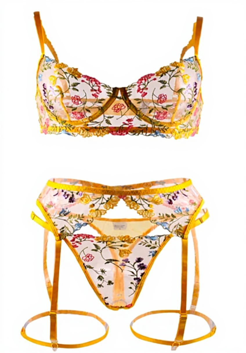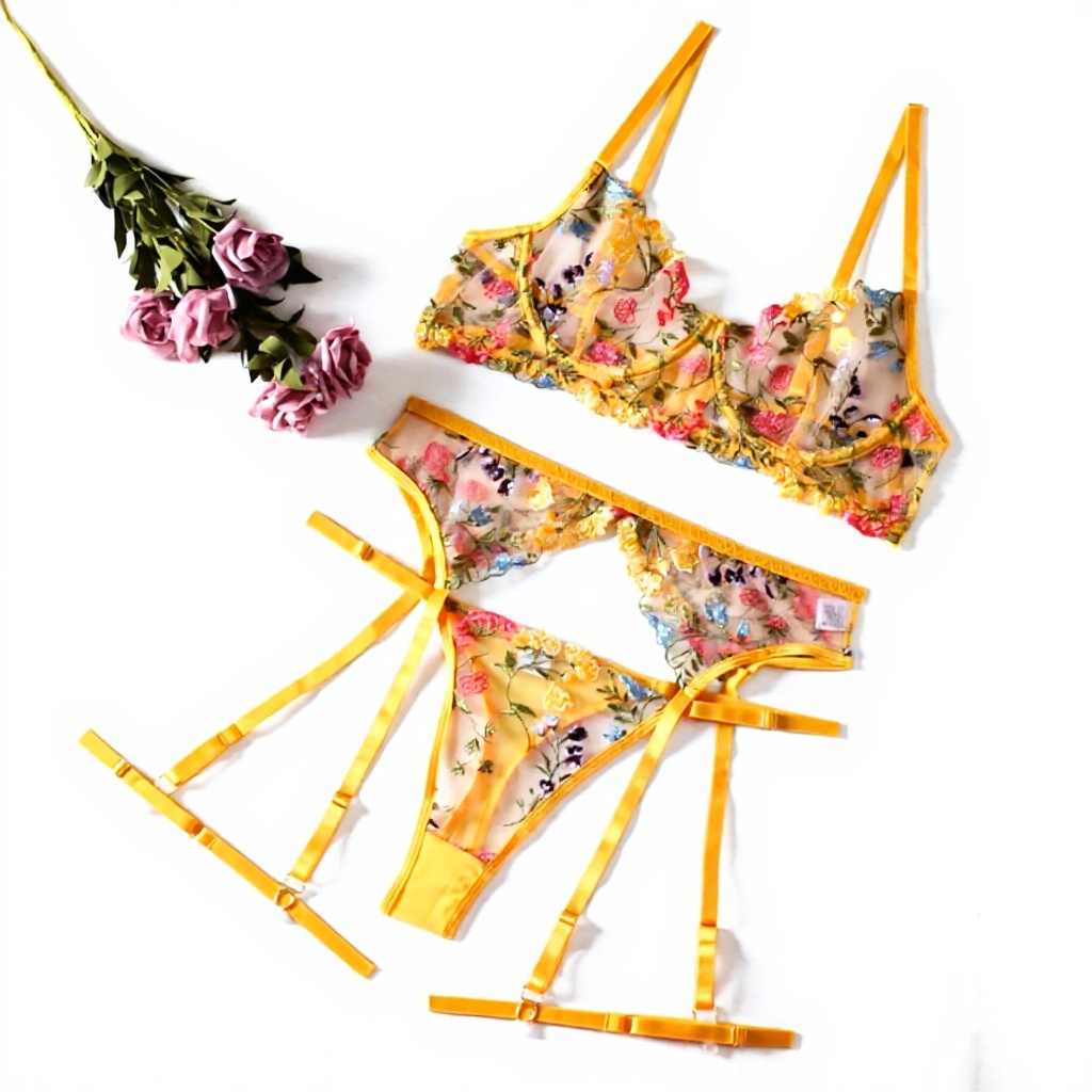 Il completo lingerie sexy donna è realizzato con materiali di alta qualità per garantire comfort e seduzione. Include un reggiseno trasparente con dettagli floreali, un perizoma passante per giarrettiera e giarrettiere nere. Disponibile in taglie S, M, L, XL e colori come rosso, nero, rosa e verde, è ideale per donare un tocco di eleganza e sensualità.